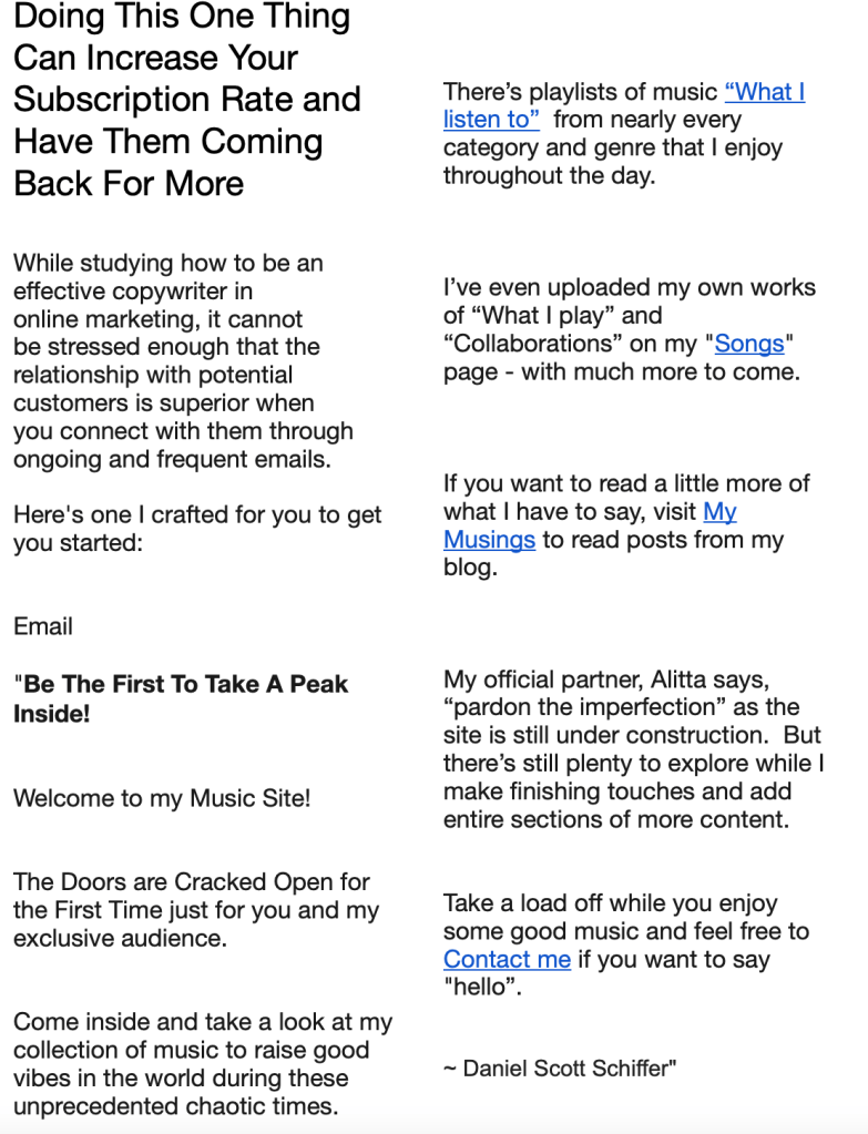 In order to get the word out about the new music website, we needed to write an email campaign and drive traffic.