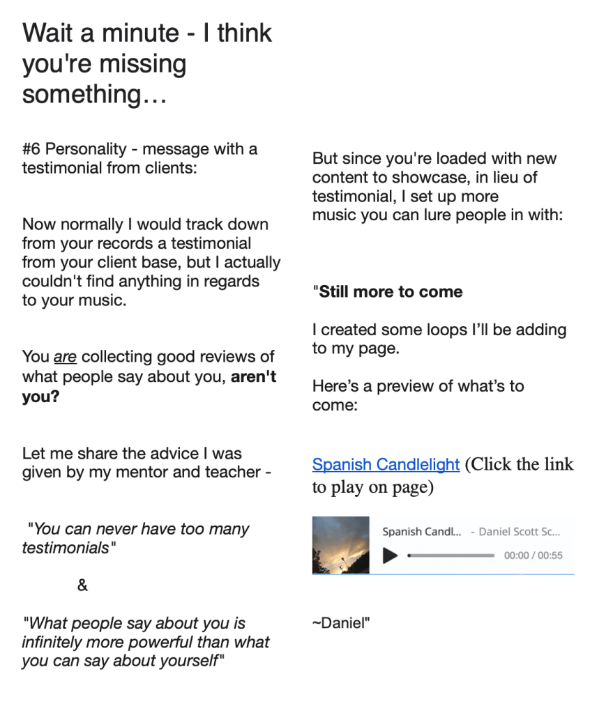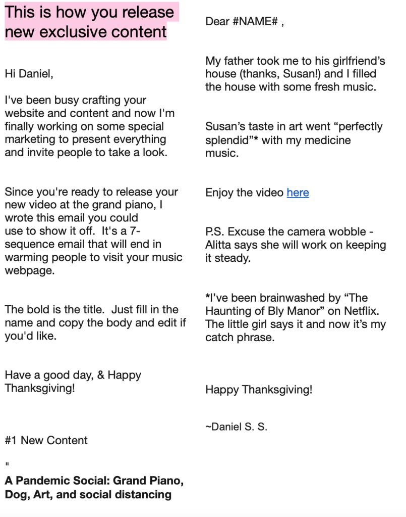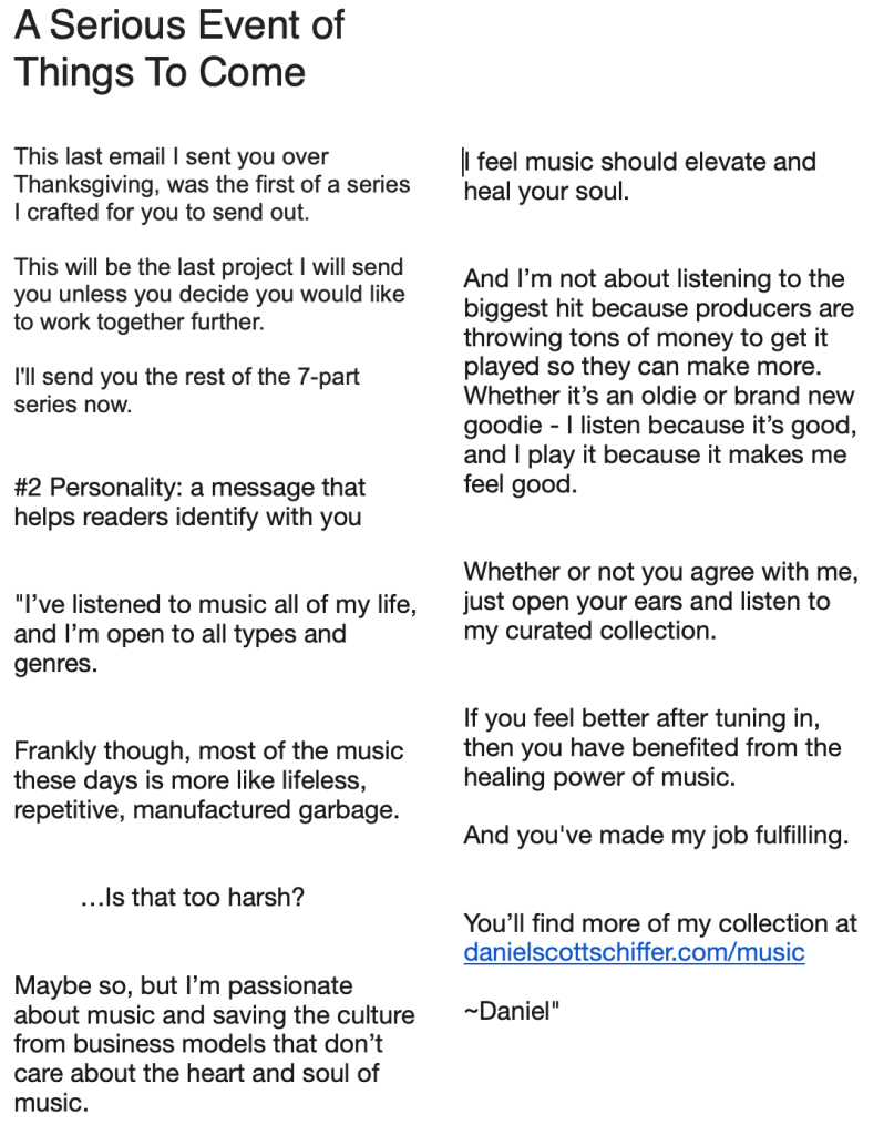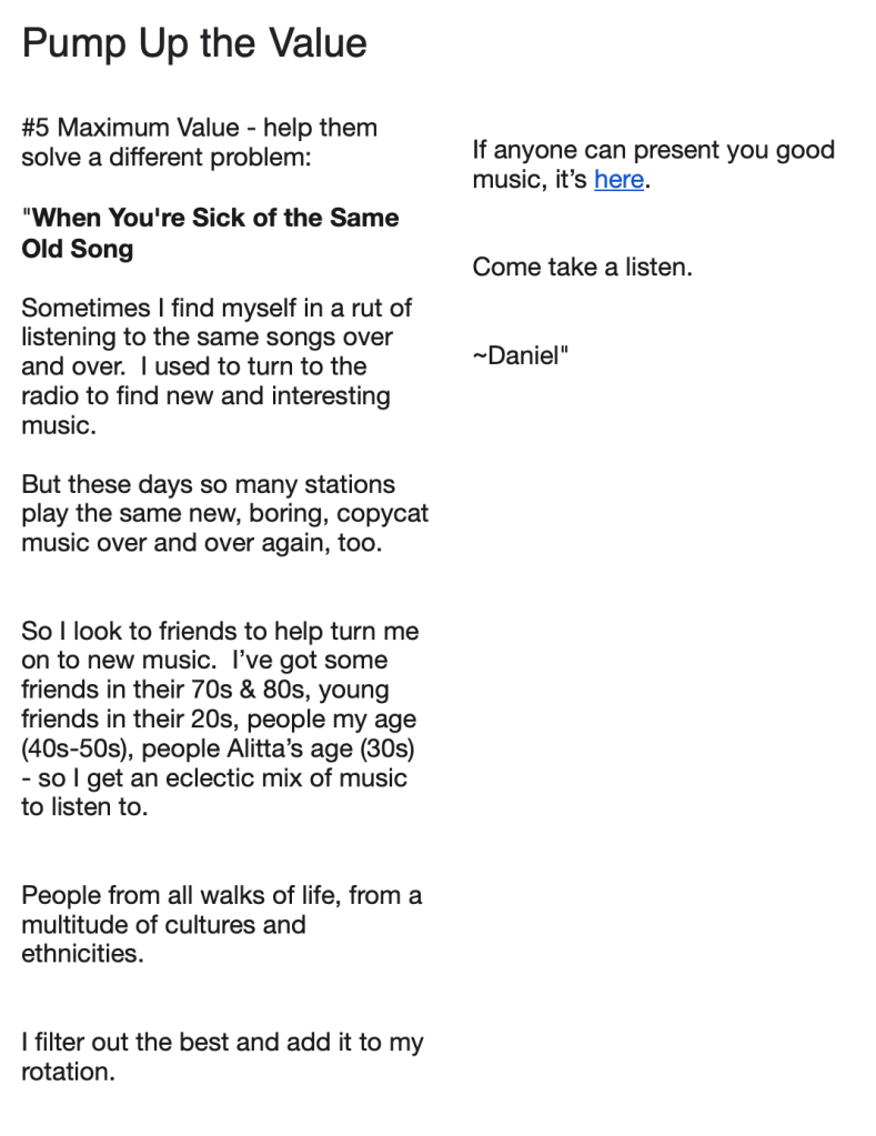 In order to get the word out about the new music website, we needed to write an email campaign and drive traffic.